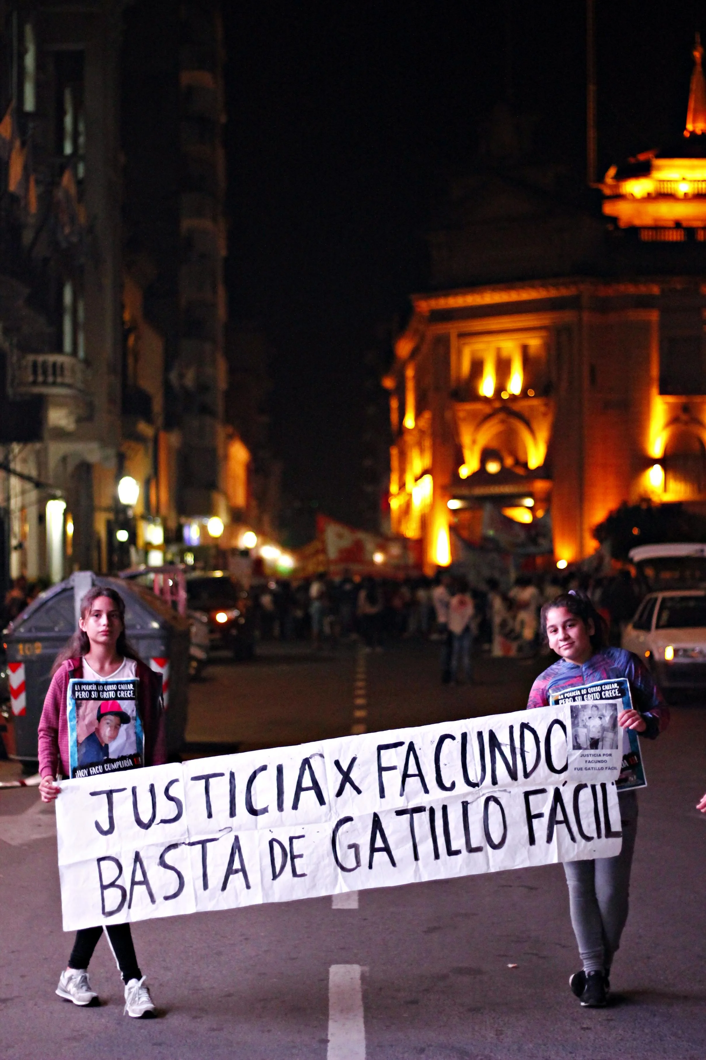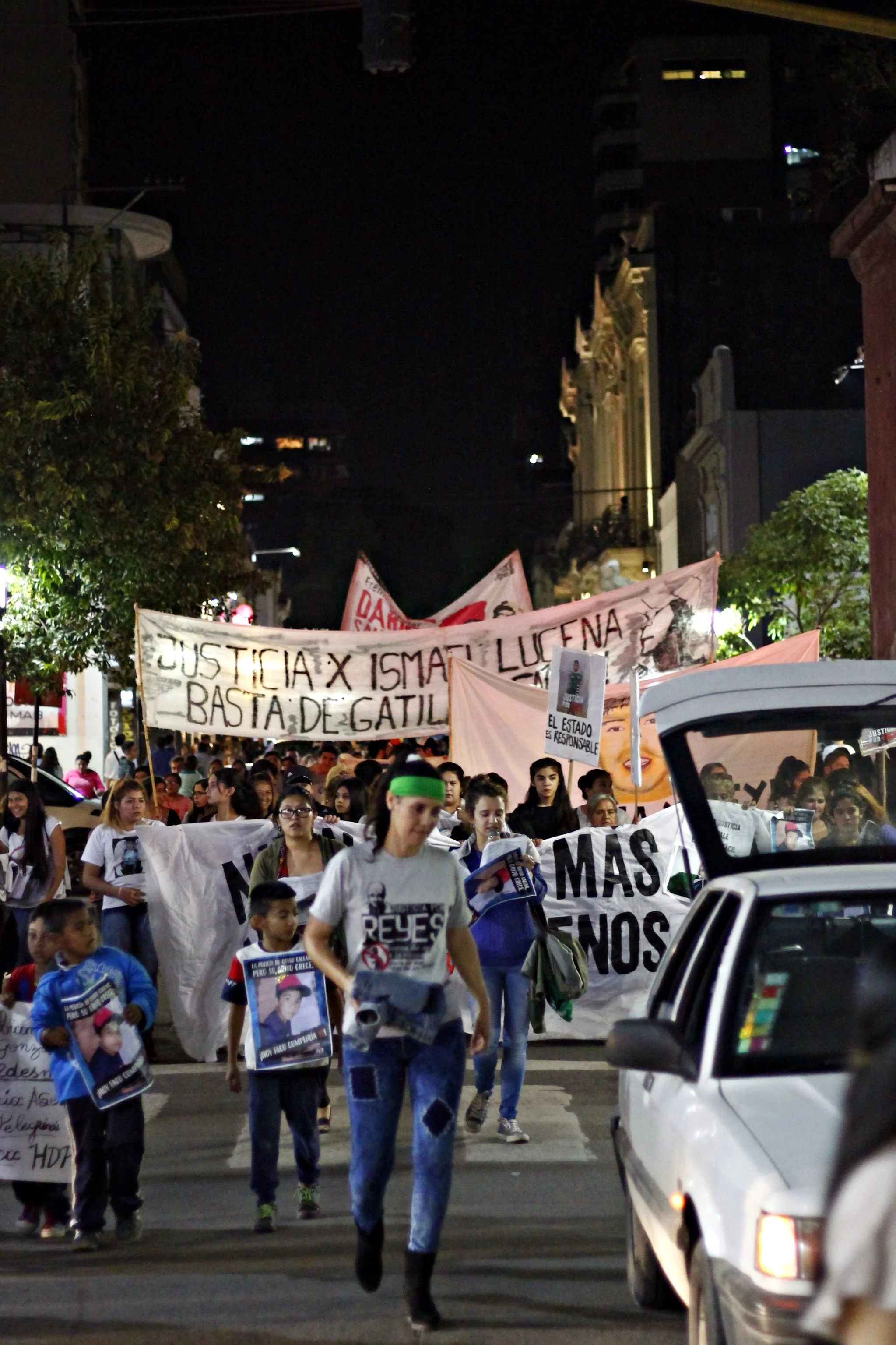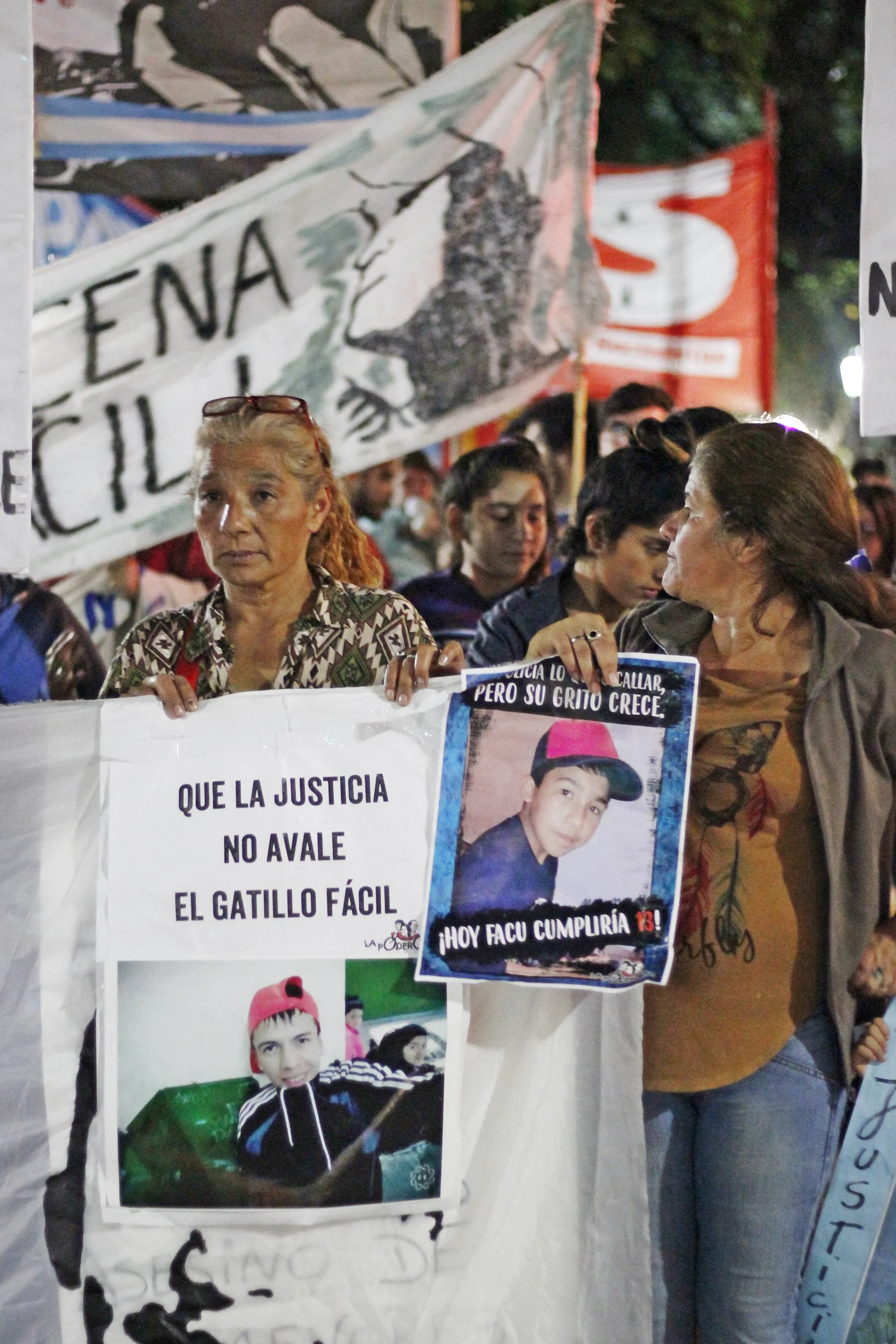 El caso de Facundo se sumó a otras causas de gatillo fácil en la provincia. El viernes pasado, estas historias se abrazaron por el mes de la lucha contra la violencia institucional. En una movilización de la que participaron alrededor de 400 personas se gritaron los nombres de Ismael Lucena, Miguel Reyes y Milagros Avellaneda, entre otras víctimas de la violencia de la cual el Estado es responsable. “Yo me pregunto y le pregunto a toda la sociedad, así como ellos se preguntaron qué hacía un niño o qué hacían los padres, yo pregunto qué hace la sociedad, el ministro de Seguridad y el gobernador que permiten que haya un policía drogado en las fuerzas pública cuidando a la sociedad”, expresa Malvina.