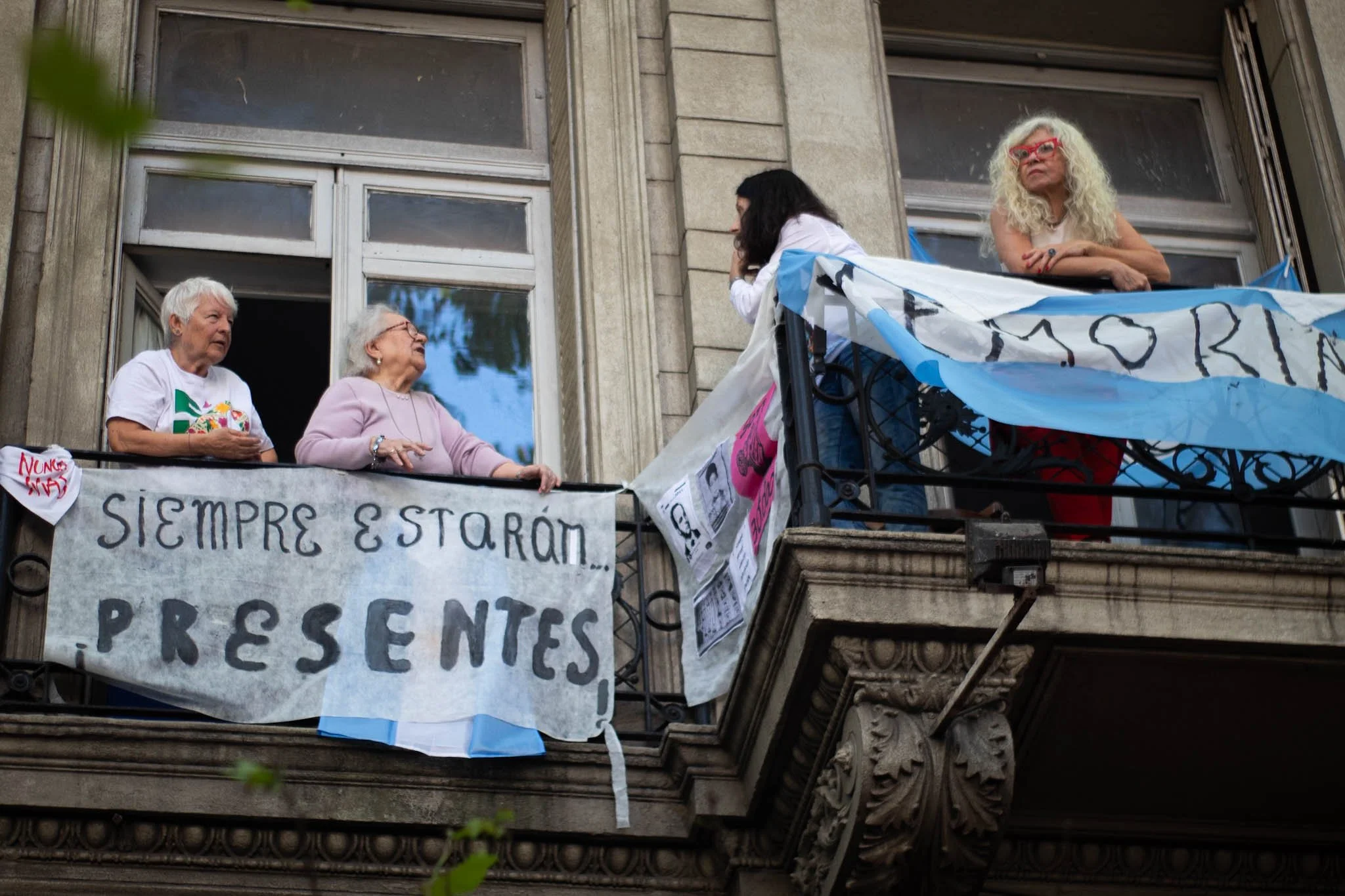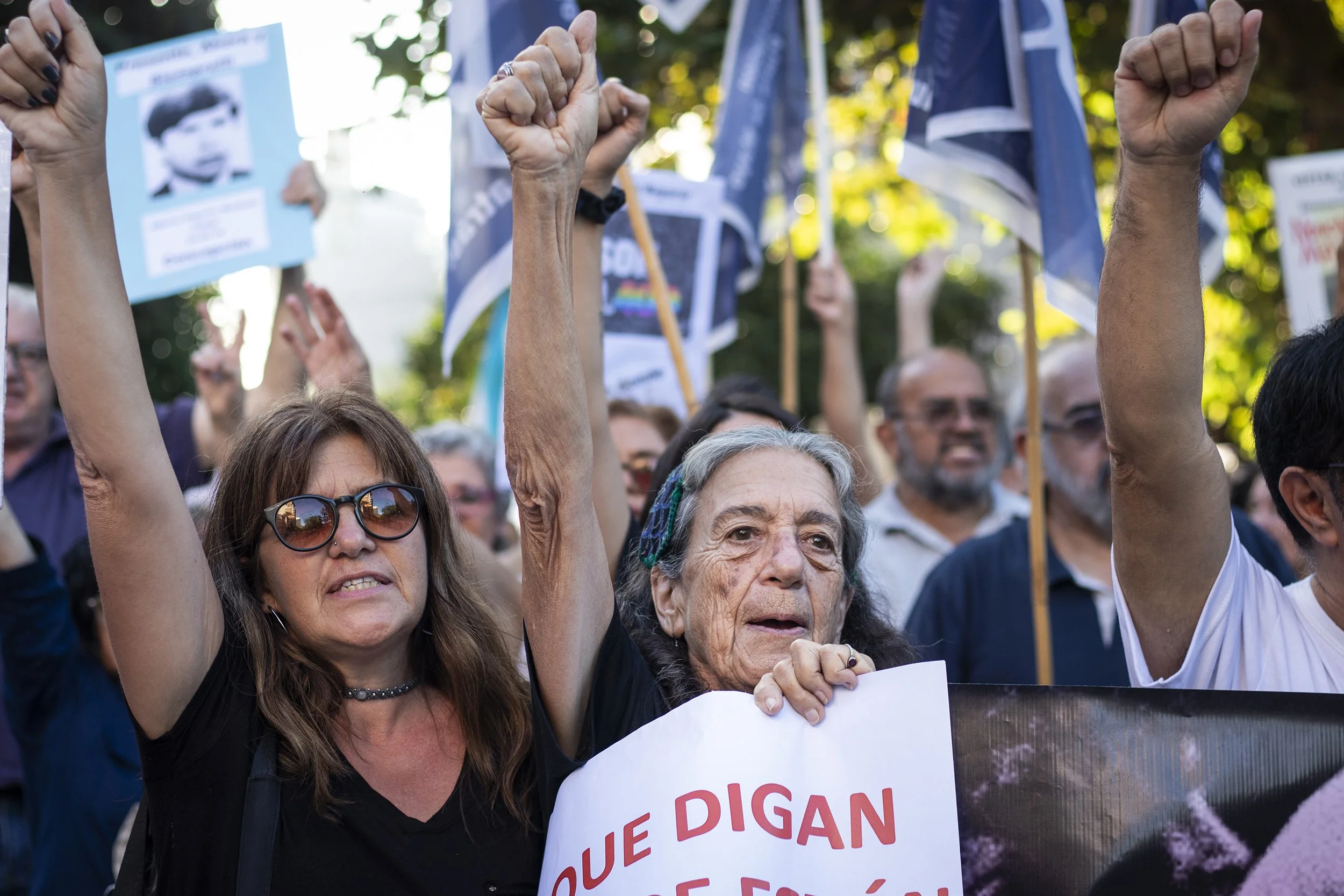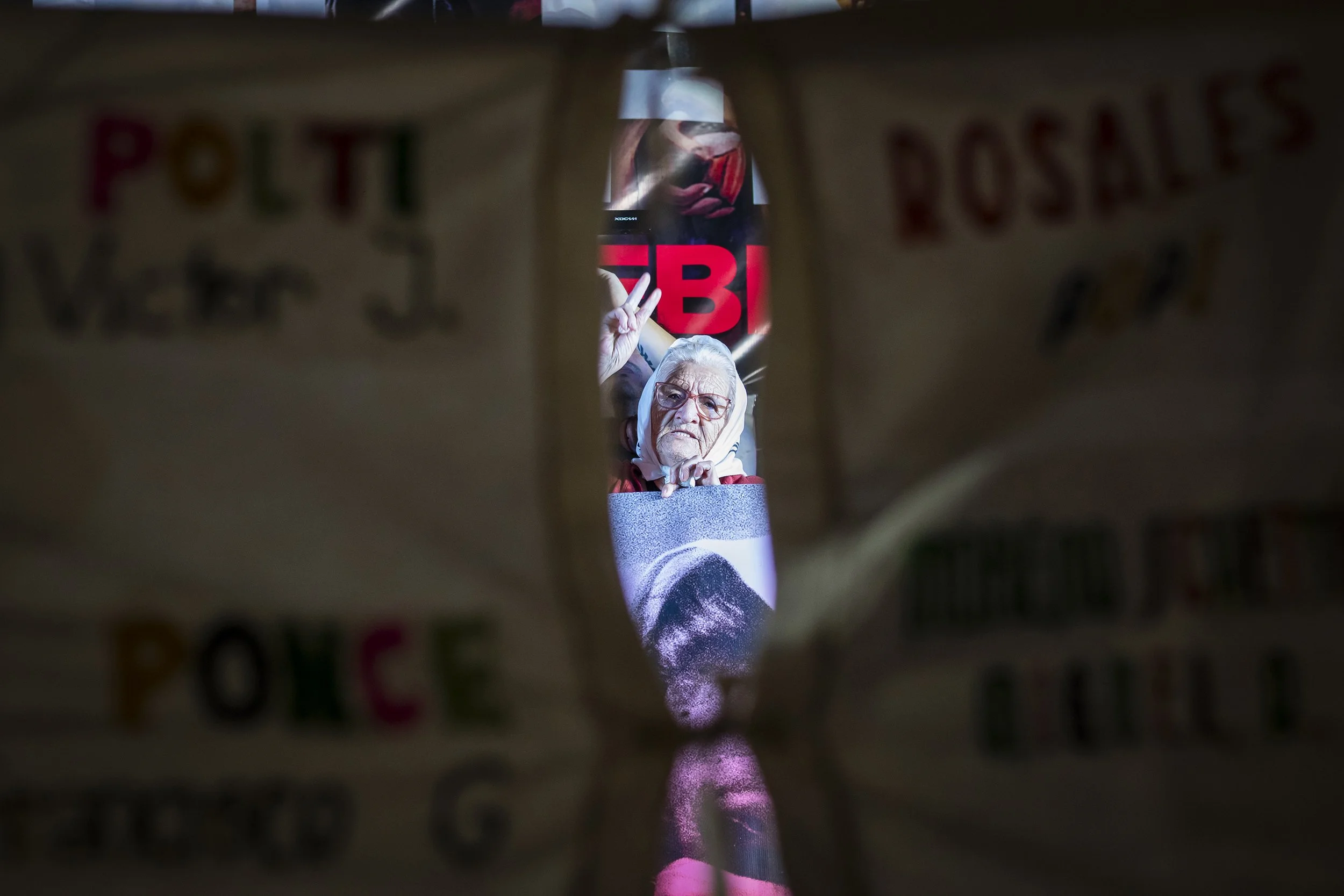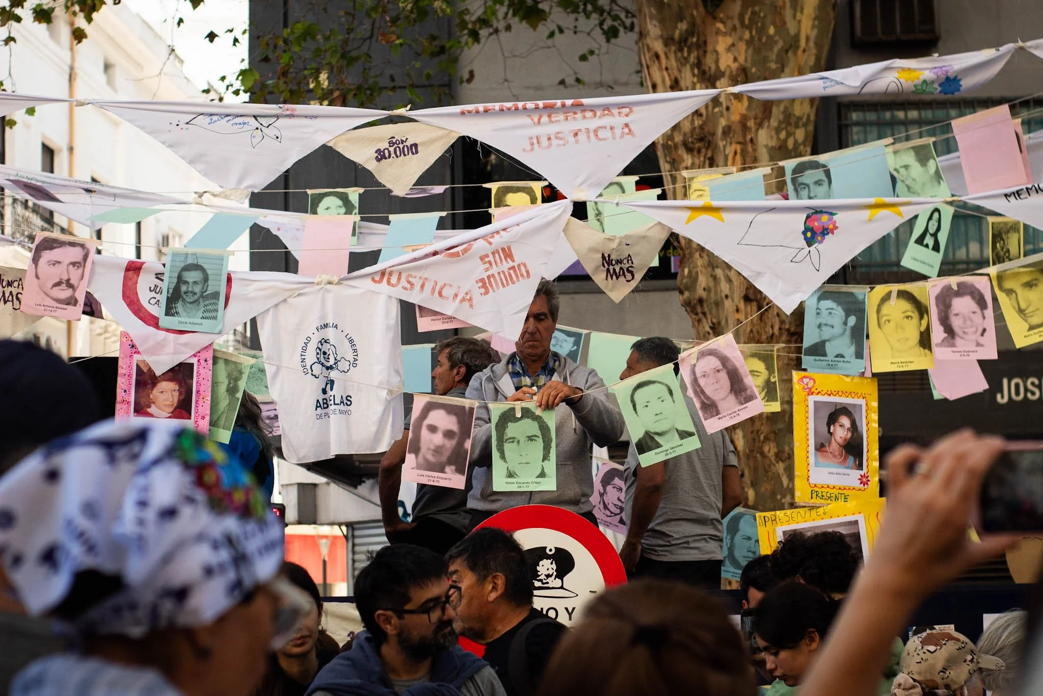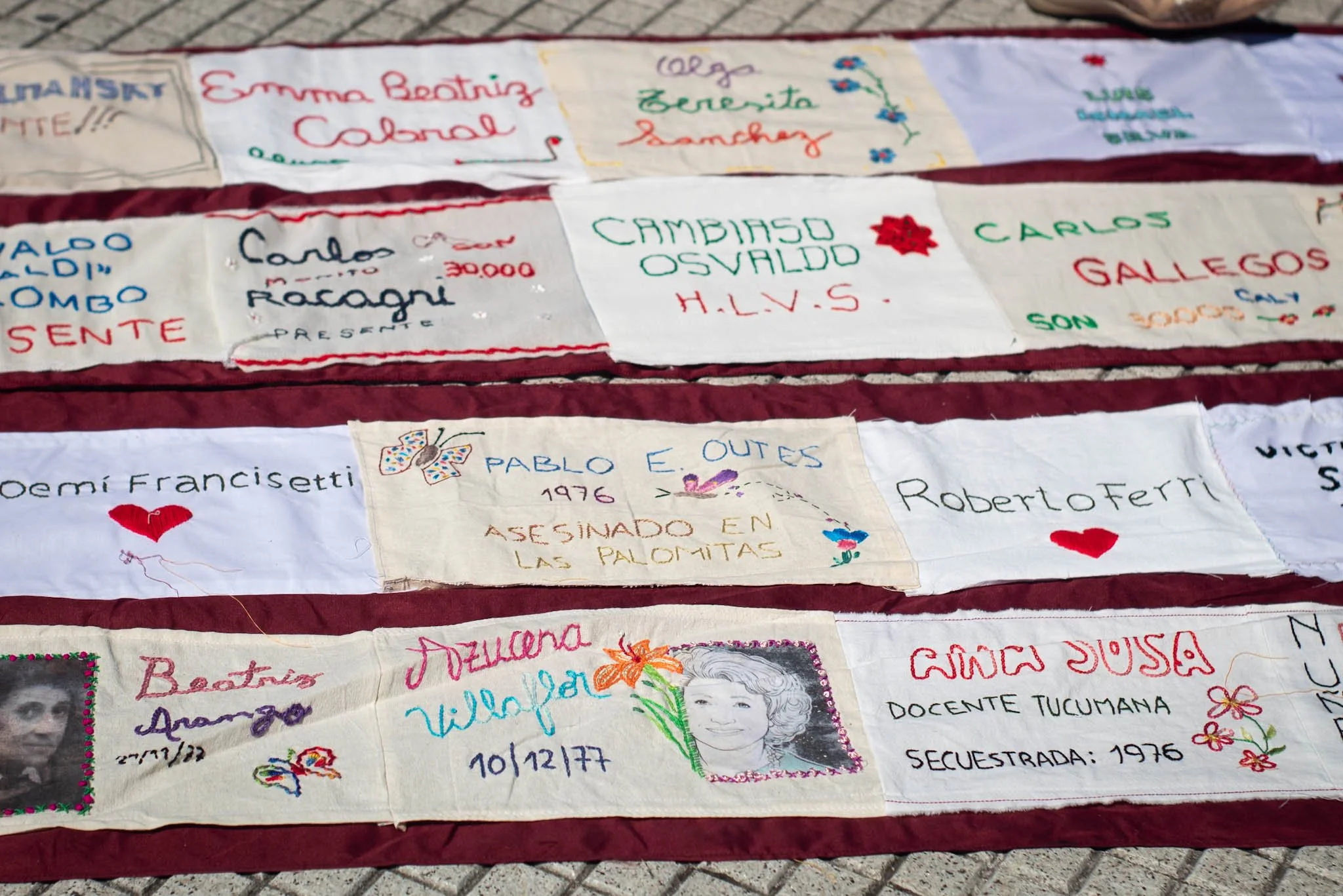Los nombres bordados de las más de 900 personas secuestradas y desaparecidas durante el terrorismo de Estado en Tucumán se desplegaron en una bandera que acompañó la movilización desde la esquina de las calles Junín y Santa Fé hasta plaza Independencia.