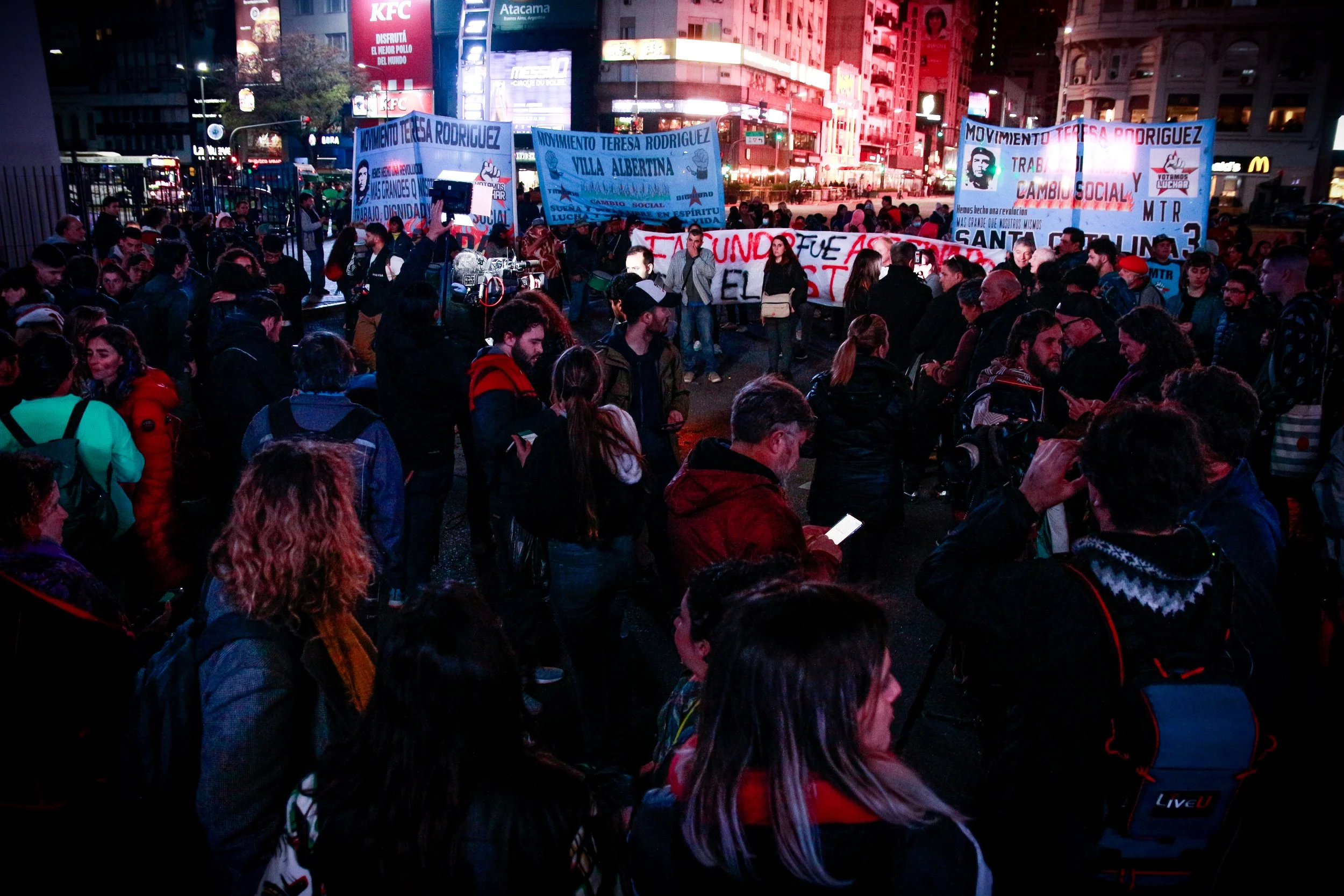 /El jueves por la tarde el Movimiento Teresa Rodriguez, junto a otras organizaciones de la izquierda, realizó una asamblea frente al obelisco de la ciudad de Buenos Aires con el fin de discutir sobre la situación actual del país ante las elecciones del domingo. Esta concentración terminó con una represión policial, detenciones a cinco personas y la muerte por asfixia del fotoperiodista y militante Facundo Molares Schoenfeld.