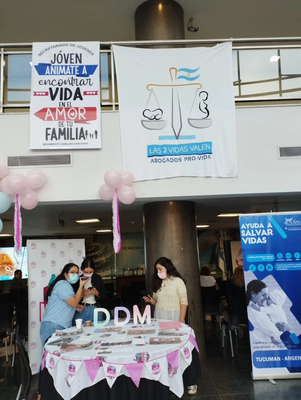 Los stands colocados en el hall estaban destinados a presentar bibliografía católica, especialmente la que promueve la abstención sexual o el calendario menstrual como forma de prevenir los embarazos no deseados. En uno de ellos, incluso, se presentaba un muñeco con forma de bebé hecho con un material simil piel al cual debían levantar y mecer quienes se acercaban al stand.