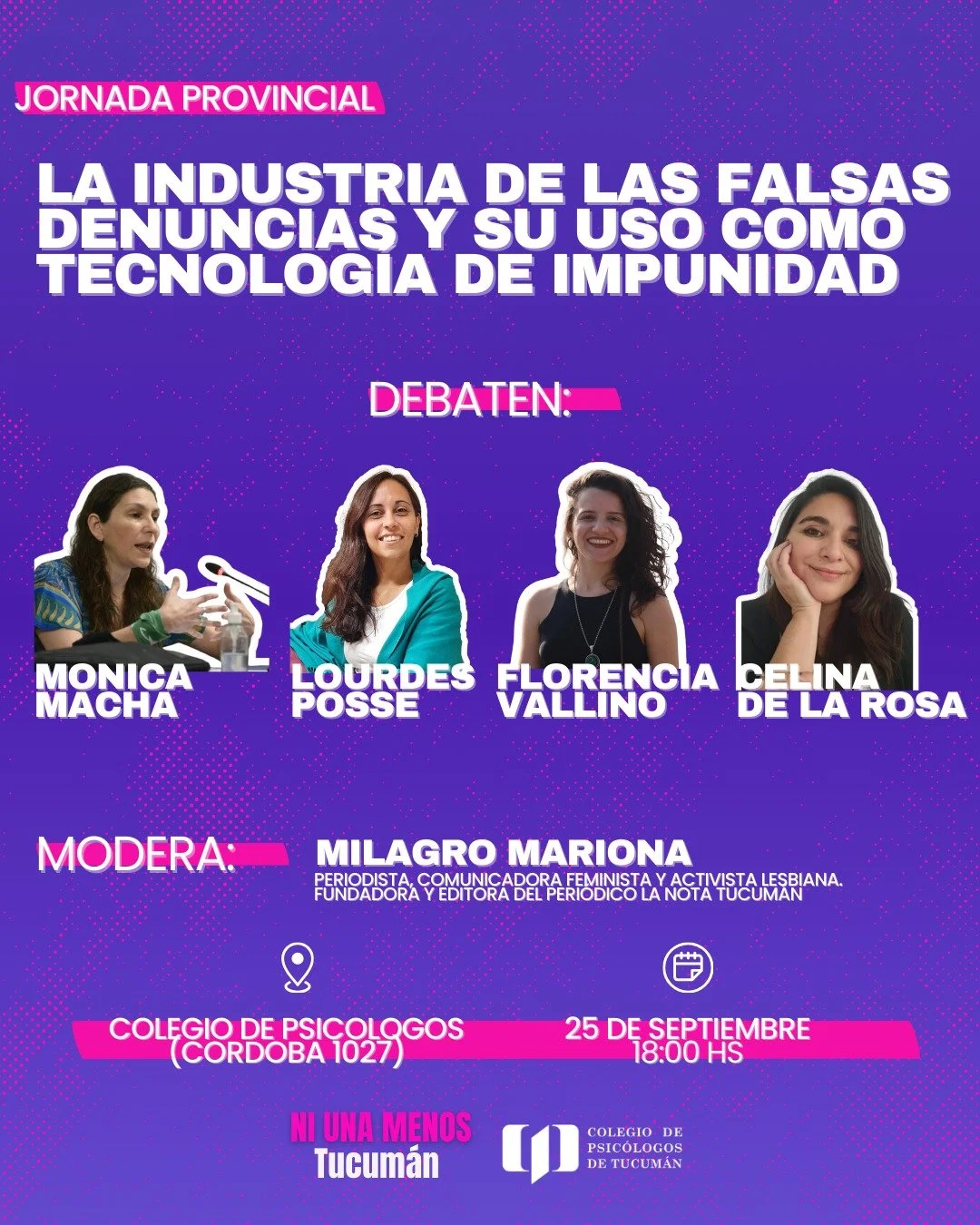 /En un contexto actual donde la violencia de género sigue siendo una realidad alarmante, es fundamental reflexionar sobre las dinámicas de poder que perpetúan esta problemática. Por eso, en Tucumán, se realizará la jornada “La industria de las falsas denuncias y su uso como tecnología de impunidad”.
